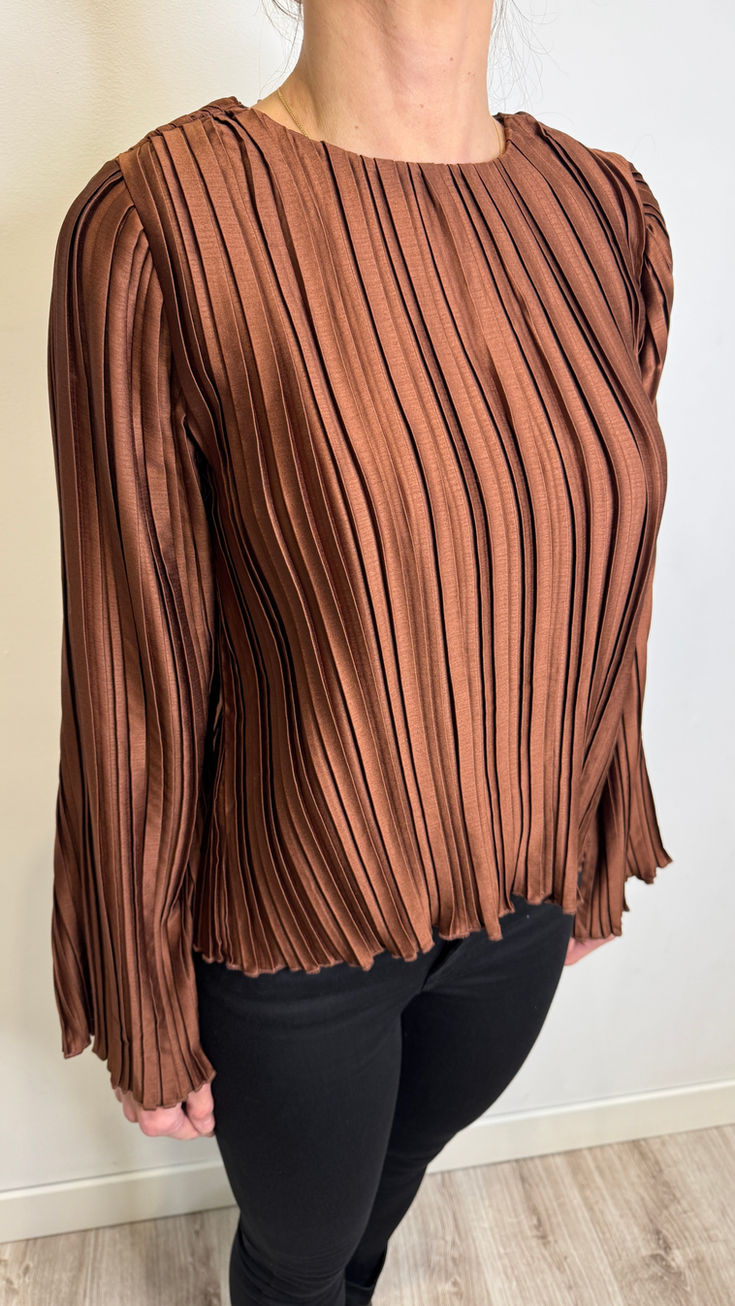 Plisowana bluzka z rozszerzanym rękawem w rozmiarze S.