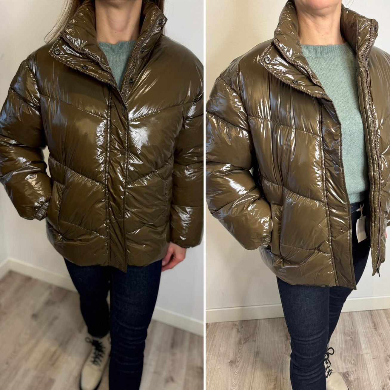 Lakierowana krótka kurtka bez kaptura. Rozmiar uniwersalny pasujący na osobę noszącą rozmiar uniwersalny.