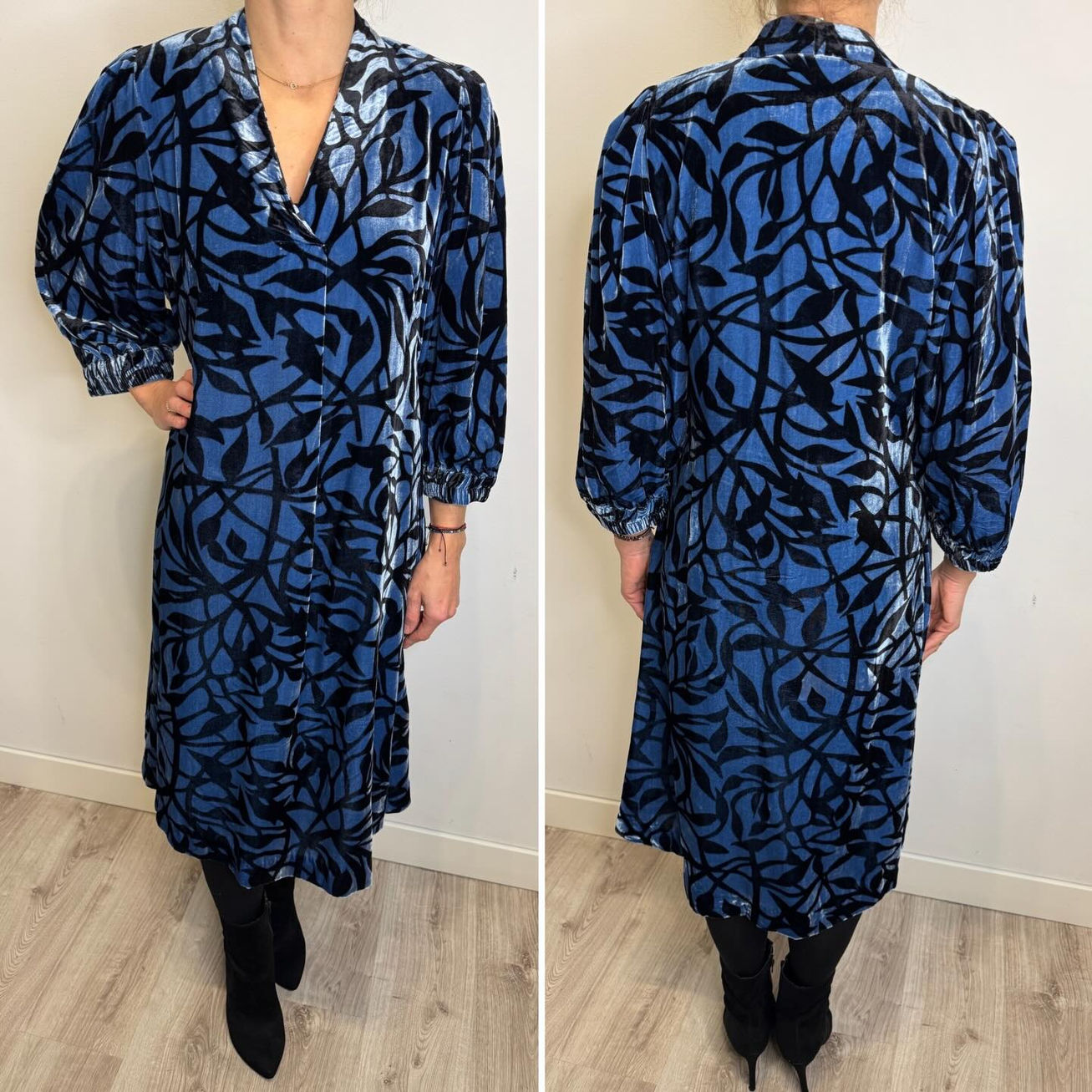 Welurowa sukienka w czarno-niebieski wzór. Rozmiar L, model MaNejalu.