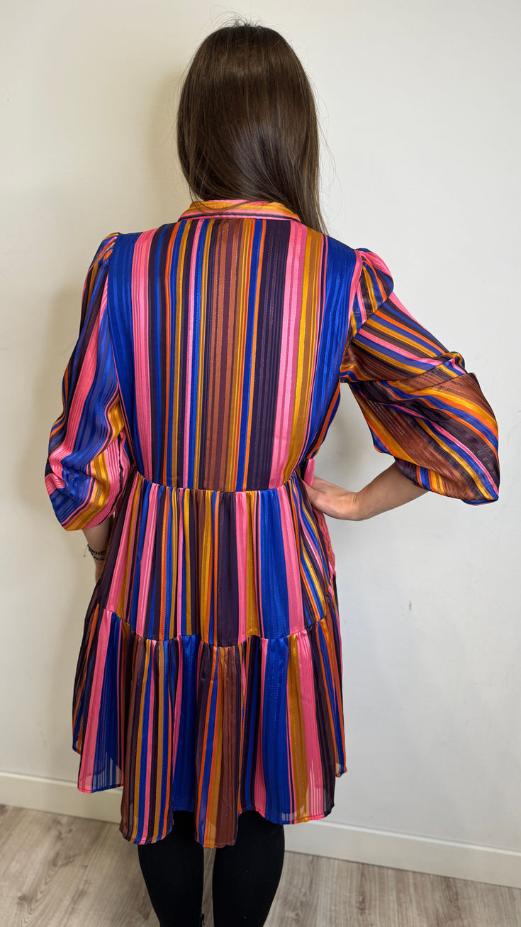 Kolorowa sukienka z błyszczącą nitką. Rozmiar pasujący na osobę noszącą rozmiar M.